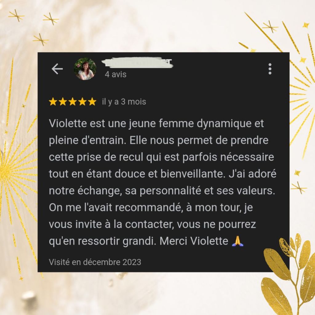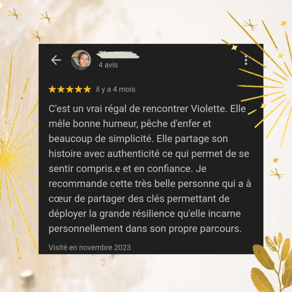 Avec elle, les échanges sont riches et d’une extrême bienveillance et ça fait un bien fou. Merci Violette.